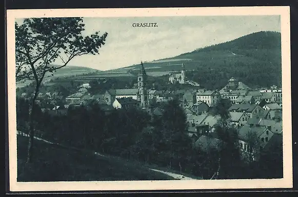 AK Graslitz, Teilansicht mit Kirche