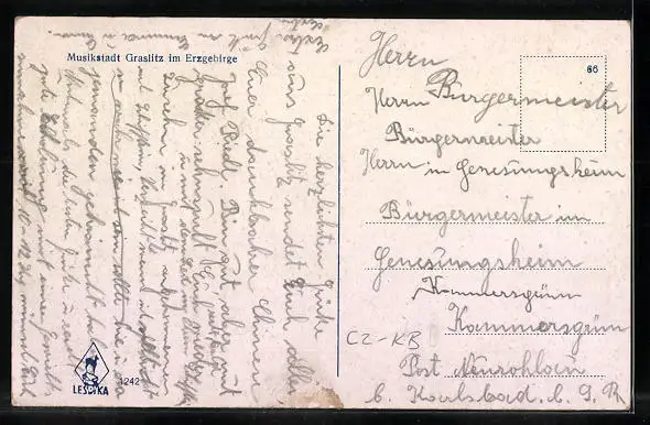 AK Graslitz im Erzgebirge, Ortsansicht aus der Vogelschau