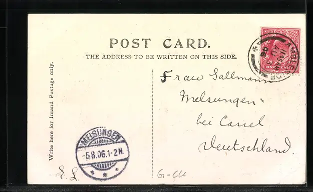 alte Ansichtskarte, gelaufen 1906, Eckknicke unten, guter Zustand