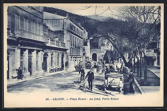 AK Grasse /A.-M., Place Neuve, au fond, Porte Neuve