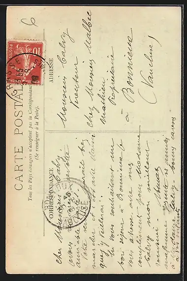 gelaufen 1908, Bugspur am oberen und unteren Rand, guter Zustand