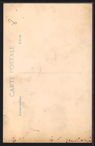 Personenbezogene Daten auf der Rückseite der Karte wurden durch blauen Textmarker unkenntlich gemacht. Die blauen Stellen sind auf die Vorderseite durchgeweicht und wirken sich negativ auf das Postkartenfoto aus