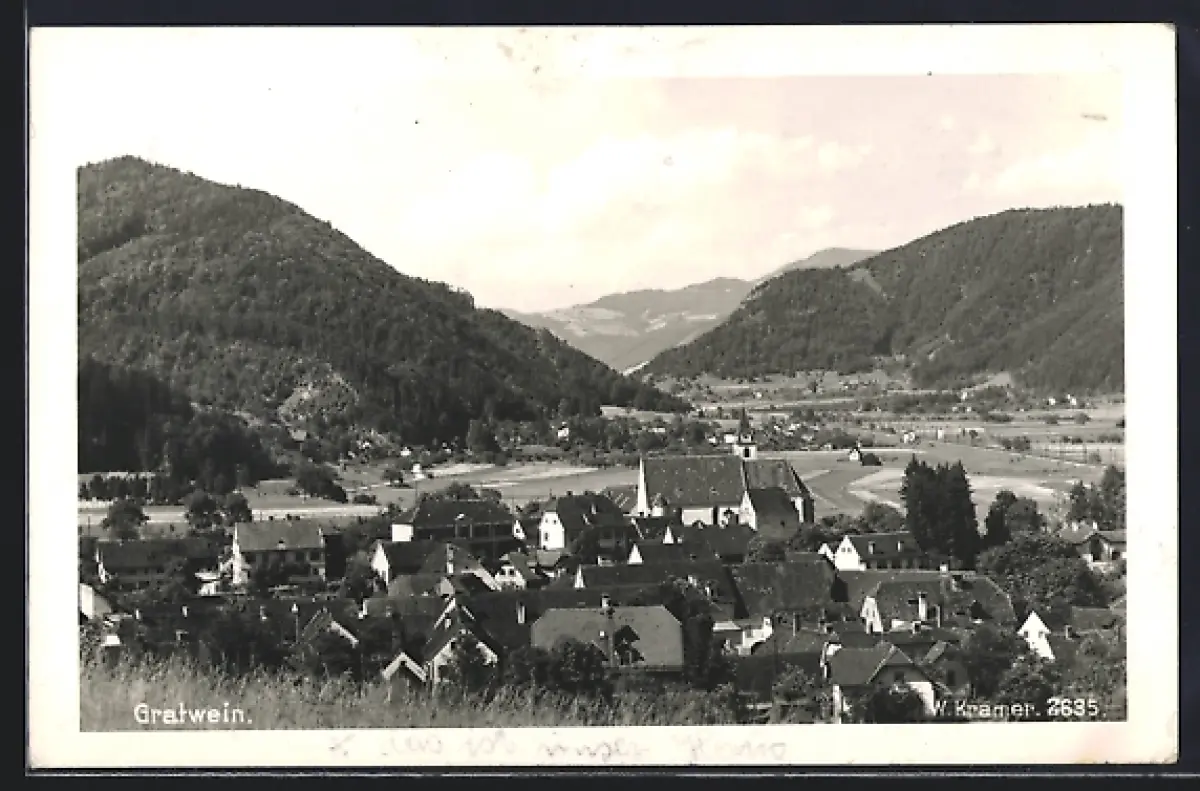 AK Gratwein, Ortsansicht vom Berghang aus