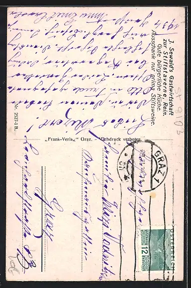 AK Gratwein-Strassengel, Rein, J. Sewalds Gasthaus zur Stiftstaverne, Kloster