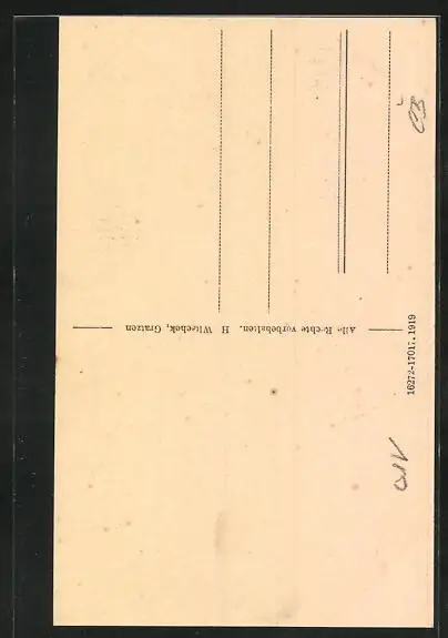 Personenbezogene Daten auf der Rückseite der Karte wurden durch blauen Textmarker unkenntlich gemacht. Die blauen Stellen sind auf die Vorderseite durchgeweicht und wirken sich negativ auf das Postkartenfoto aus