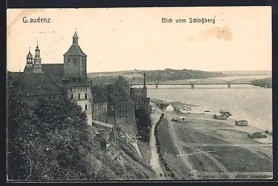 AK Graudenz, Blick vom Schlossberg mit Brücke