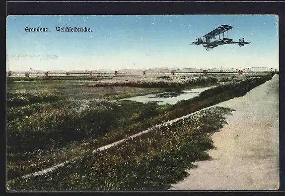 AK Graudenz-Grudziadz, Flieger bei der Weichselbrücke