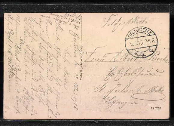 alte Ansichtskarte, gelaufen 1915 als Feldpost, guter Zustand