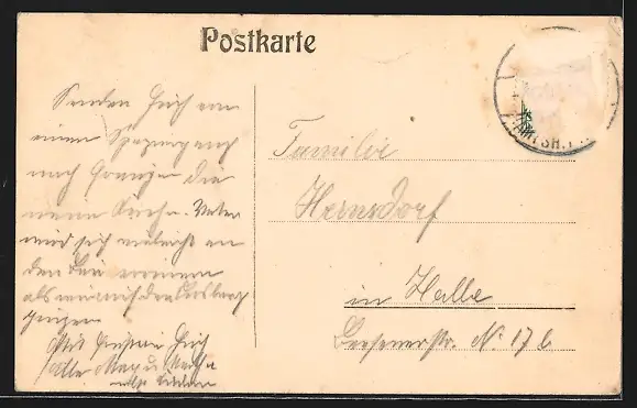alte Ansichtskarte, gelaufen, Briefmarke entfernt, rückseitig Oberflächenschaden, guter Zustand
