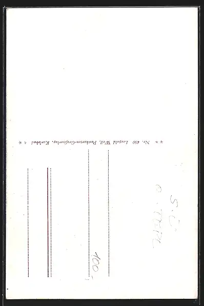 Personenbezogene Daten auf der Rückseite der Karte wurden durch blauen Textmarker unkenntlich gemacht. Die blauen Stellen sind auf die Vorderseite durchgeweicht und wirken sich negativ auf das Postkartenfoto aus