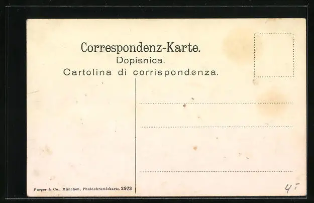 Personenbezogene Daten auf der Rückseite der Karte wurden durch blauen Textmarker unkenntlich gemacht. Die blauen Stellen sind auf die Vorderseite durchgeweicht und wirken sich negativ auf das Postkartenfoto aus