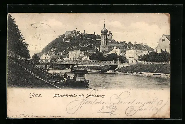 AK Graz, Albrechtbrücke mit Schlossberg