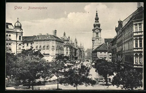 AK Graz, Bismarckplatz mit Blick auf Kirche
