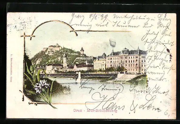 AK Graz, Blick auf Mur-Schlossberg