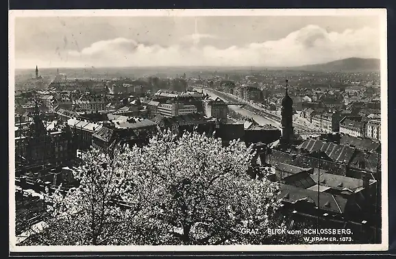 AK Graz, Blick vom Schlossberg mit Kirche