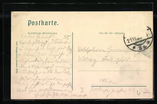 alte Ansichtskarte, gelaufen, Briefmarke entfernt, guter Zustand