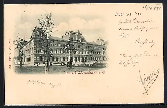 AK Graz, Die Post- und Telegraphen-Anstalt