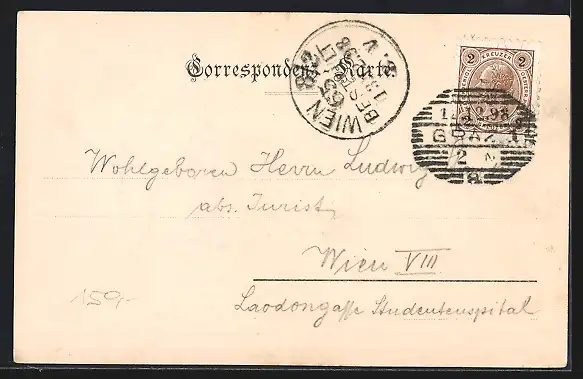 alte Ansichtskarte, gelaufen 1898, guter Zustand