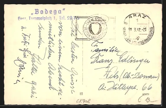 AK Graz, Gasthof Bodega, Tummelplatz 1