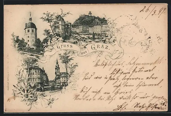 AK Graz, Glockenthurm, Auerspergplatz, Hauptplatz