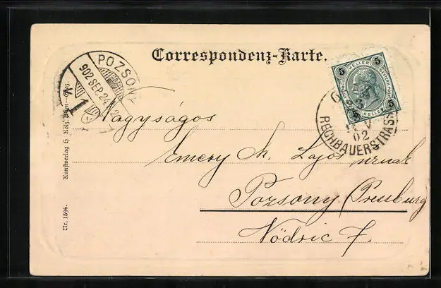 gelaufen 1902, Papierrest Kante li. oben, sonst guter Zustand