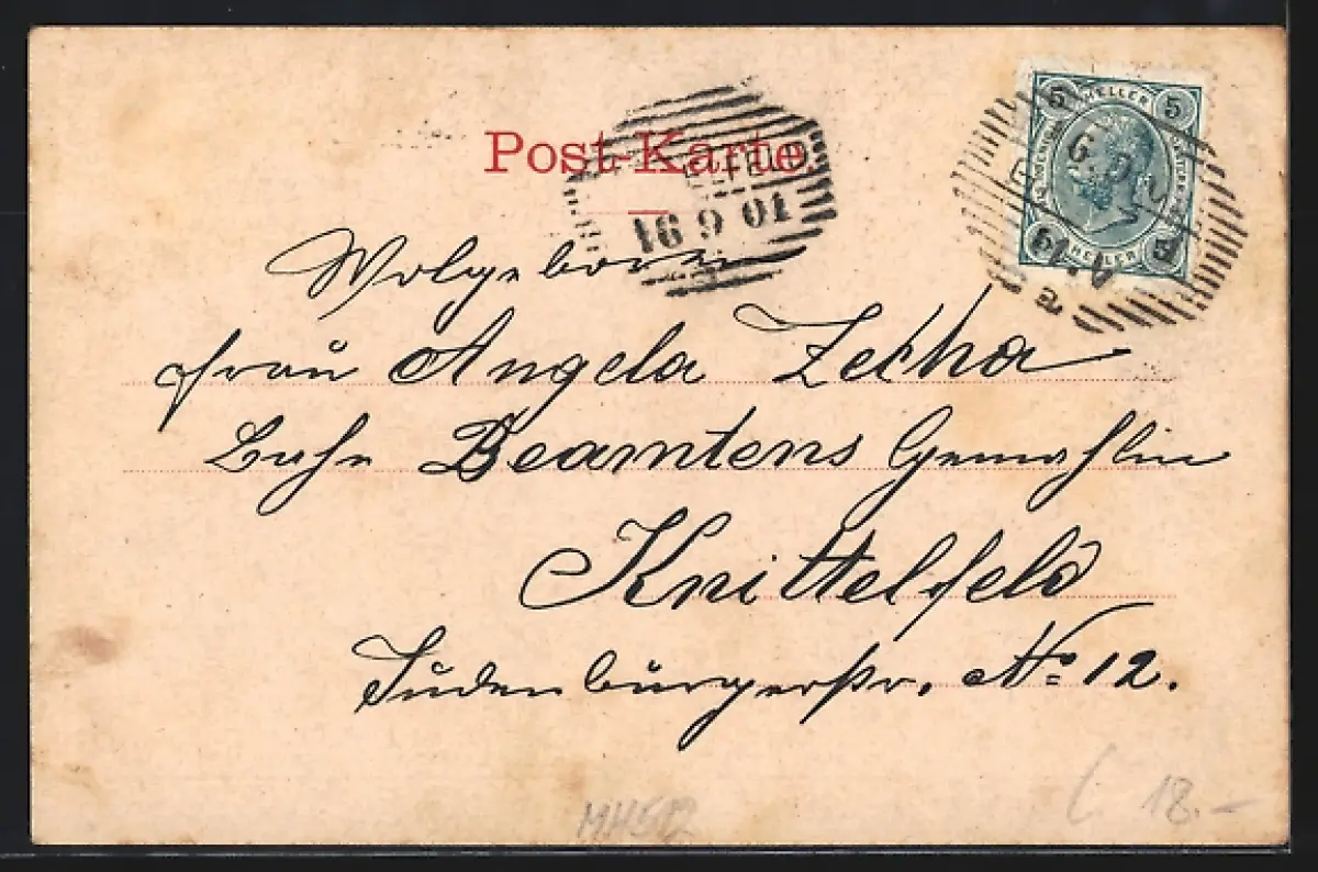 alte Ansichtskarte, gelaufen 1901, Stempelspur, guter Zustand