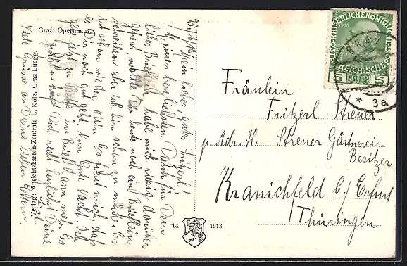 gelaufen 1914, Bugspur li. oben, guter Zustand