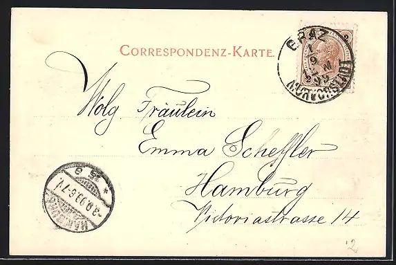 alte Ansichtskarte, gelaufen 1899, Stempelspur, guter Zustand
