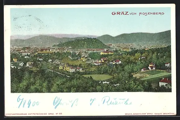 AK Graz, Ortsansicht von Rosenberg aus gesehen