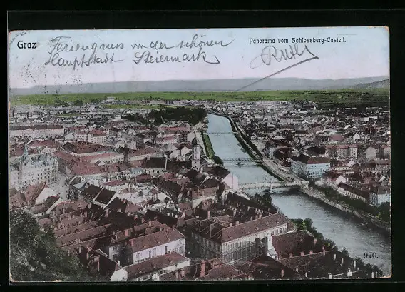 AK Graz, Panorama vom Schlossberg-Castell