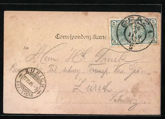 gelaufen 1905, Eckknick li. oben, guter Zustand