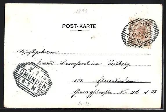 alte Ansichtskarte, gelaufen 1899, guter Zustand