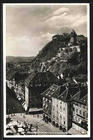 AK Graz, Platz u. Schlossberg mit Café Nordstern