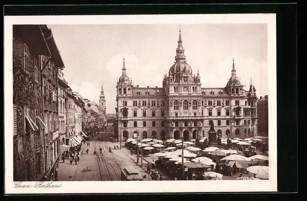AK Graz, Rathaus mit Marktständen