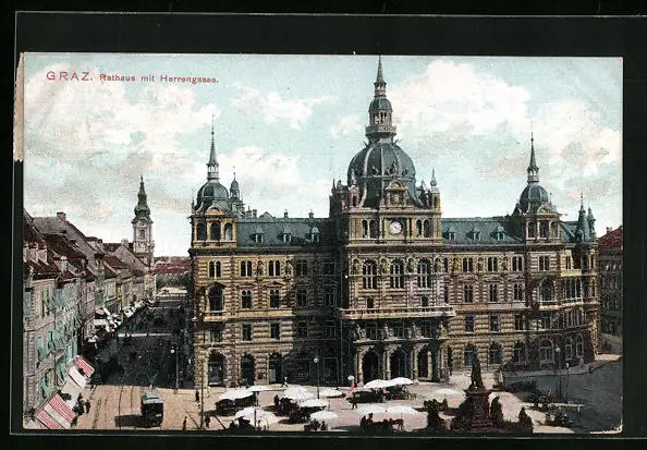AK Graz, Rathaus und Herrengasse mit Strassenbahn