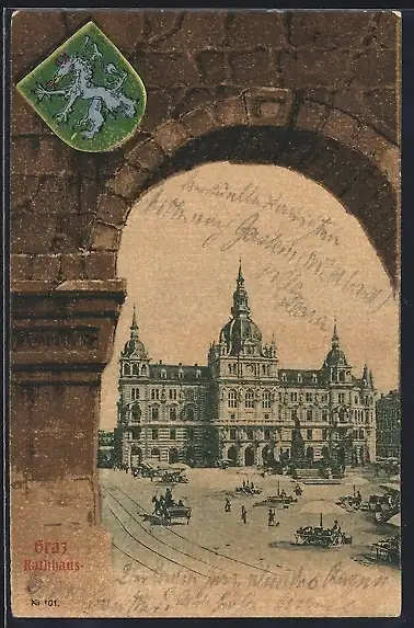 AK Graz, Rathaus unter einem Torbogen, Wappen