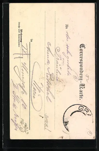 alte Ansichtskarte, gelaufen, Briefmarke entfernt, rückseitig Oberflächenschaden, guter Zustand