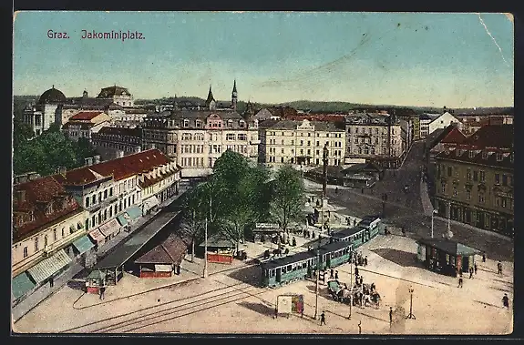 AK Graz, Strassenbahn am Jakominiplatz