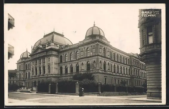 AK Graz, Technik, Strassenpartie mit grossem Gebäude