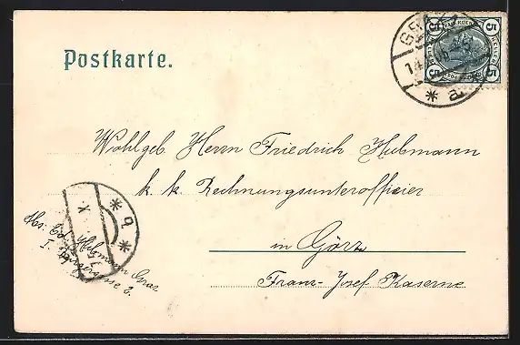 alte Ansichtskarte, gelaufen 1905, guter Zustand