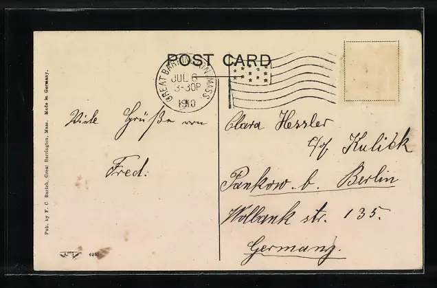 gelaufen 1910, Briefmarke entfernt, guter Zustand