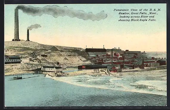 AK Great Falls, MT, Panoramic View of the B. & M. Smelter