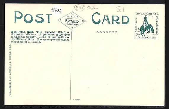 Personenbezogene Daten auf der Rückseite der Karte wurden durch blauen Textmarker unkenntlich gemacht. Die blauen Stellen sind auf die Vorderseite durchgeweicht und wirken sich negativ auf das Postkartenfoto aus