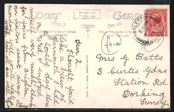 gelaufen 1925, Eckknicke li. unten u. re. oben, guter Zustand