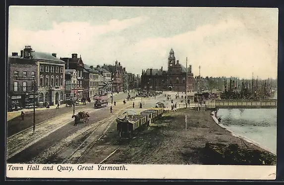AK Great Yarmouth, Town Hall and Quay, Strassenbahn