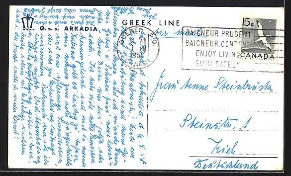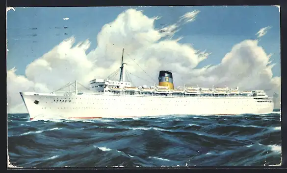 AK Greek Line, S.S. Arkadia auf unruhiger See