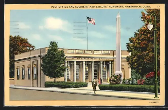 AK Greenwich, CT, Post Office and Soldiers` and Sailors` Monument