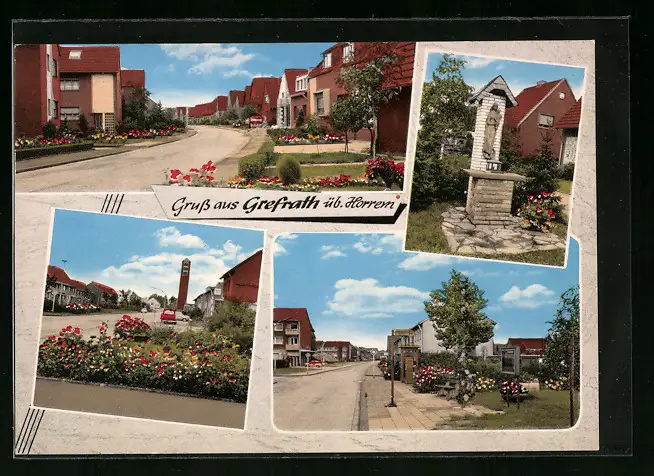 AK Grefrath üb. Horren, Strassenpartie mit Wohnhäusern, Strassenpartie mit Kirche