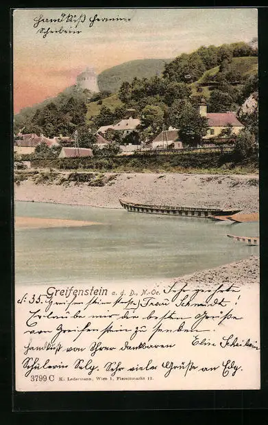 AK Greifenstein /Donau, Blick von der Donau zur Burgruine