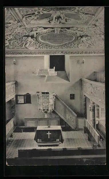 AK Greifenstein, Inneres der Schlosskirche mit Altar